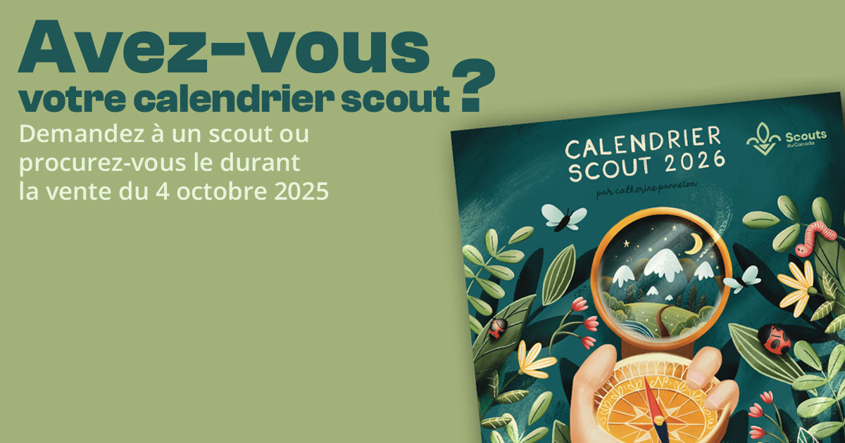 Les scouts circuleront dans les rues de Thetford Mines samedi le 4 octobre 2025 afin d'offrir à la population le tout nouveau calendrier scout 2026. Cette année, le calendrier est illustré par l'artiste Catherine Panneton. Il sera possible de se procurer un calendrier pour la modique somme de 10$.