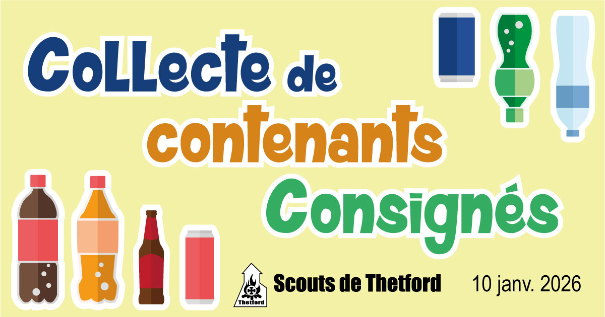 Les Scouts de Thetford invitent les citoyens des secteurs Black Lake et Thetford Mines à conserver bouteilles et canettes vides pour une collecte qui se tiendra le 10 janvier 2026.