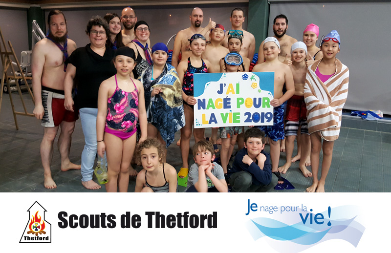 C'est avec fierté que les Scouts de Thetford ont participé une fois de plus au défi Je nage pour la vie! qui a eu lieu samedi le 6 avril 2019 à la piscine de la polyvalente de Thetford.