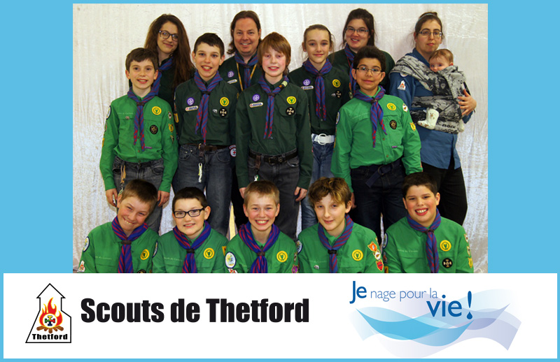 C'est avec grand plaisir que les Scouts de Thetford ont accepté la présidence d'honneur de l'édition 2015 thetfordoise du défi "Je nage pour la vie!".